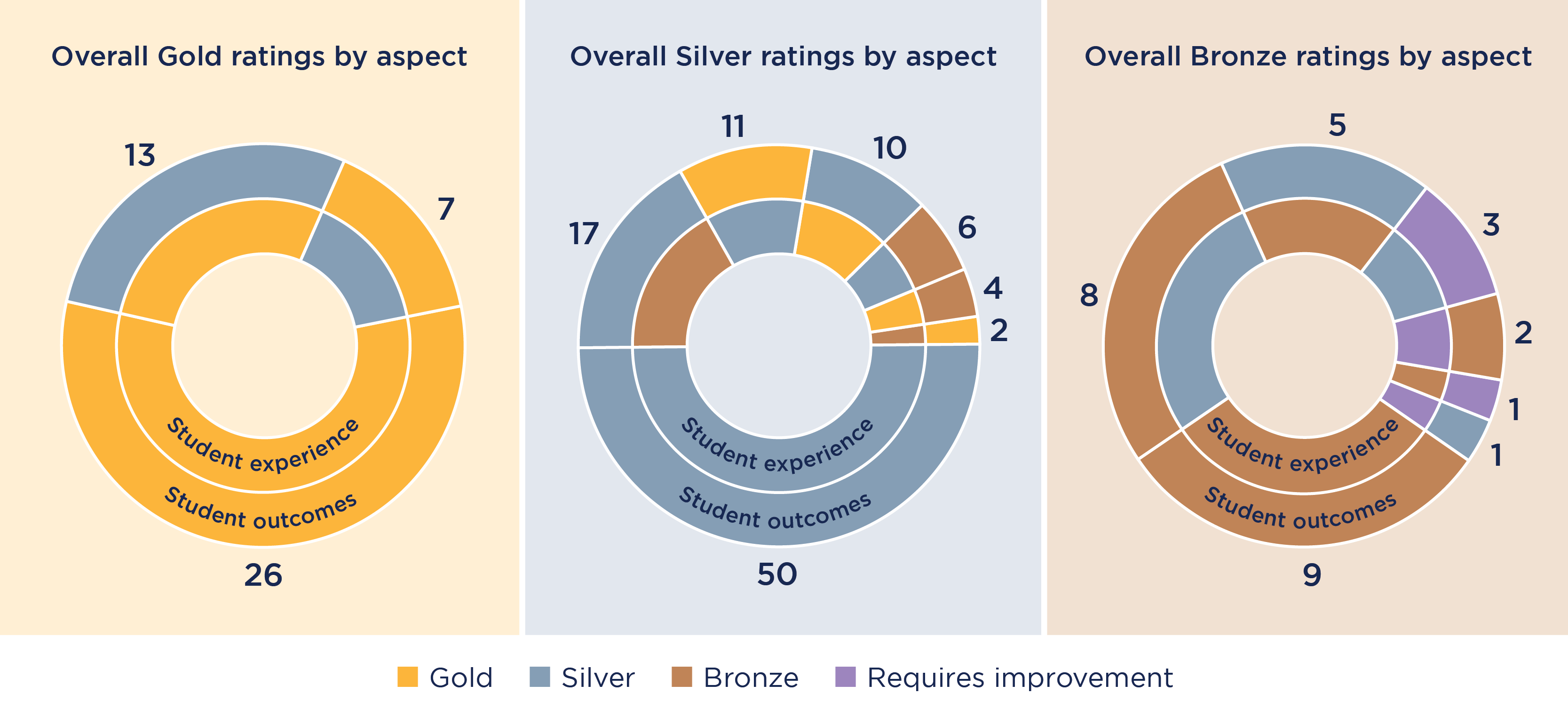 - 100 providers have been rated Silver for delivering a very high quality student experience and outcomes, and overall are performing well above our regulatory baseline