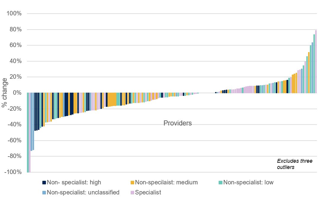 - As we have previously reported, there continues to be significant variability between the financial performance of individual providers. Despite this, the likelihood of multiple providers exiting the sector in a disorderly way due to financial failure is low at this time. We continue to monitor the financial position of individual registered providers and will continue to intervene if we consider that necessary to protect the interests of students.