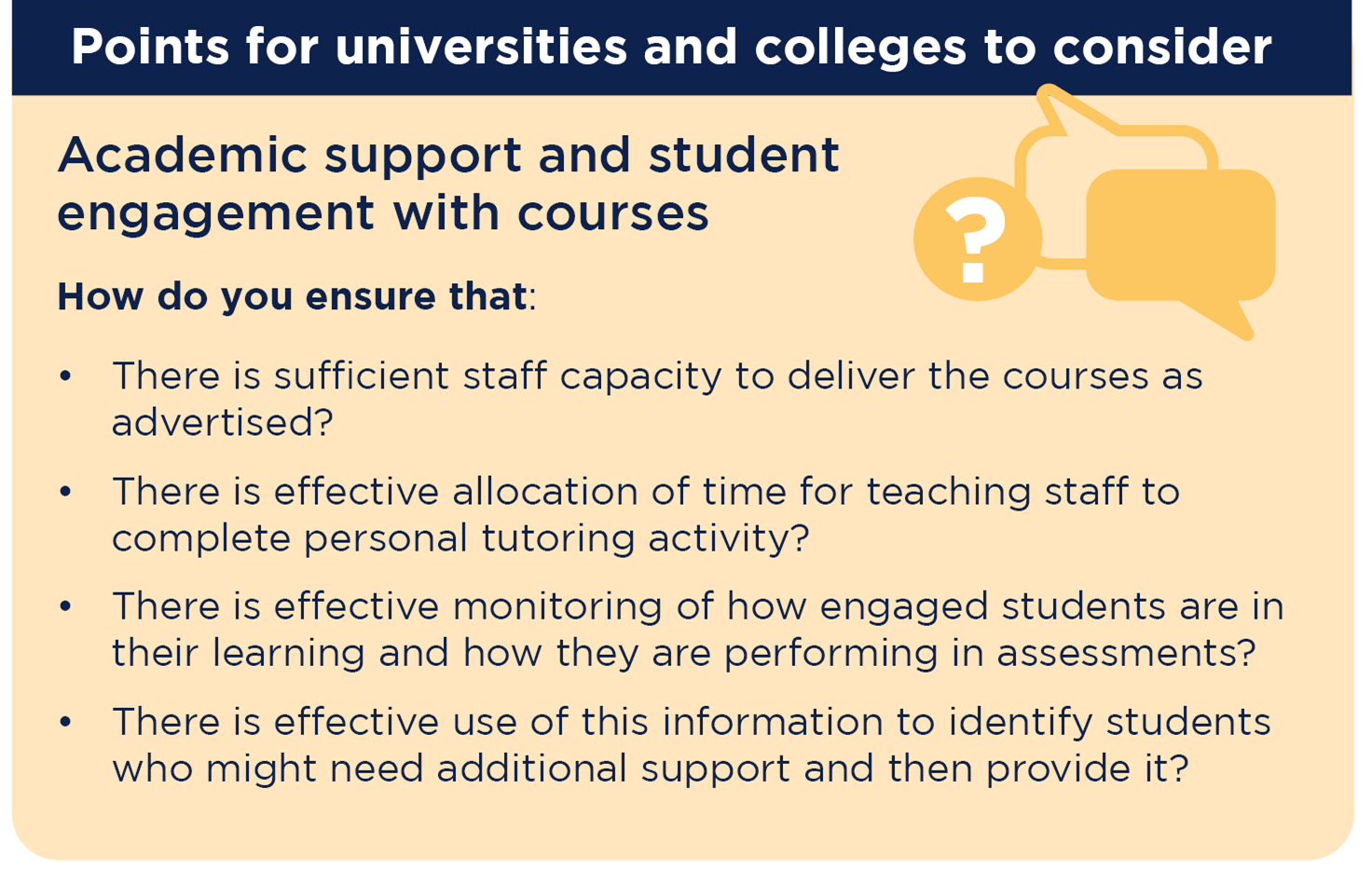 Points for universities and colleges to consider: Academic support and student engagement with courses