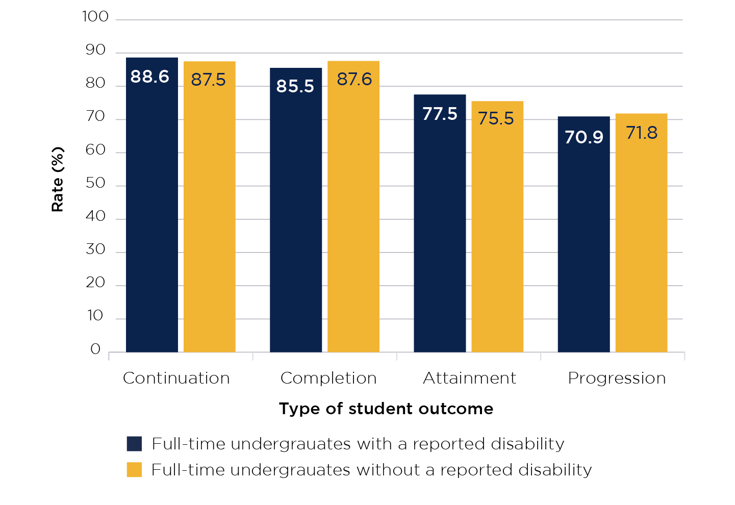 Figure 1: Student outcomes data for full-time undergraduates with and without a reported disability